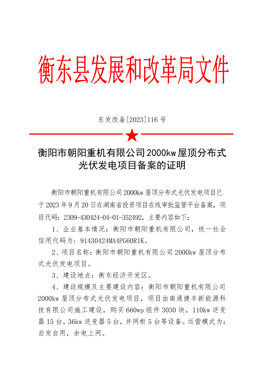 朝陽集團4400KW屋頂分布式光伏發(fā)電項目,以是公司廠房屋頂為基礎(chǔ),投資約1500萬元,安裝660wp組件3030塊、110kw逆變器15臺、36kw 逆變器5臺、以及并網(wǎng)柜5臺、自動清洗機器人等設(shè)備。所發(fā)電量主要自產(chǎn)自用,余電并入國家電網(wǎng)。該項目當(dāng)前是衡東經(jīng)濟開發(fā)區(qū)甚至衡東縣第一家大規(guī)模的企業(yè)屋面太陽能光伏發(fā)電項目。項目建成后將為企業(yè)帶來巨大的綠色能源,也能為公司帶來實實在在的經(jīng)濟價值。